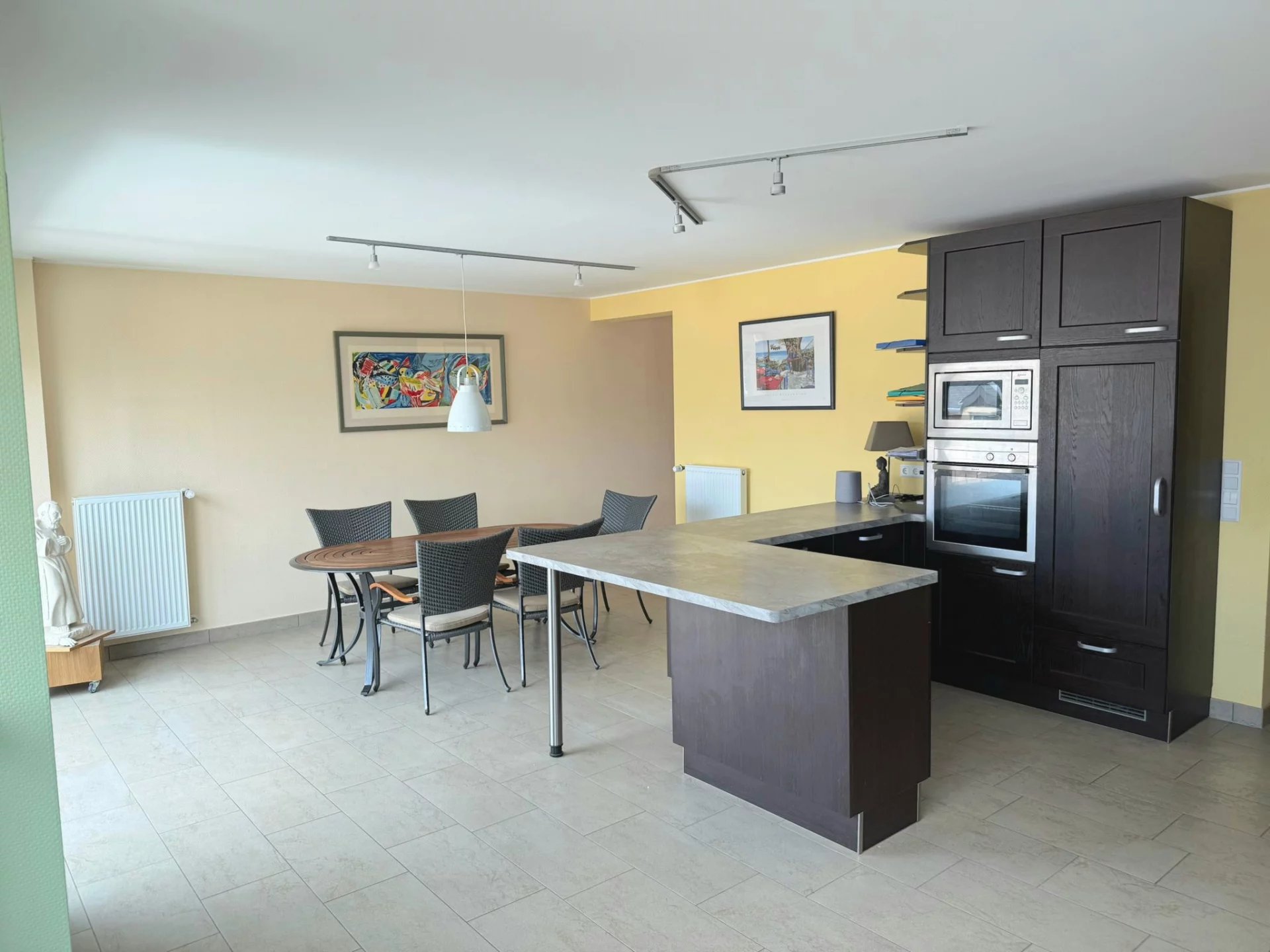 1èr étage: Hall d'entrée (+- 5,6m²) -cuisine équipée ouverte sur salle à manger (+- 37m²) -séjour (+- 23,5m²) avec accès à une terrasse ( +- 11m²). Belle vue dégagée.
