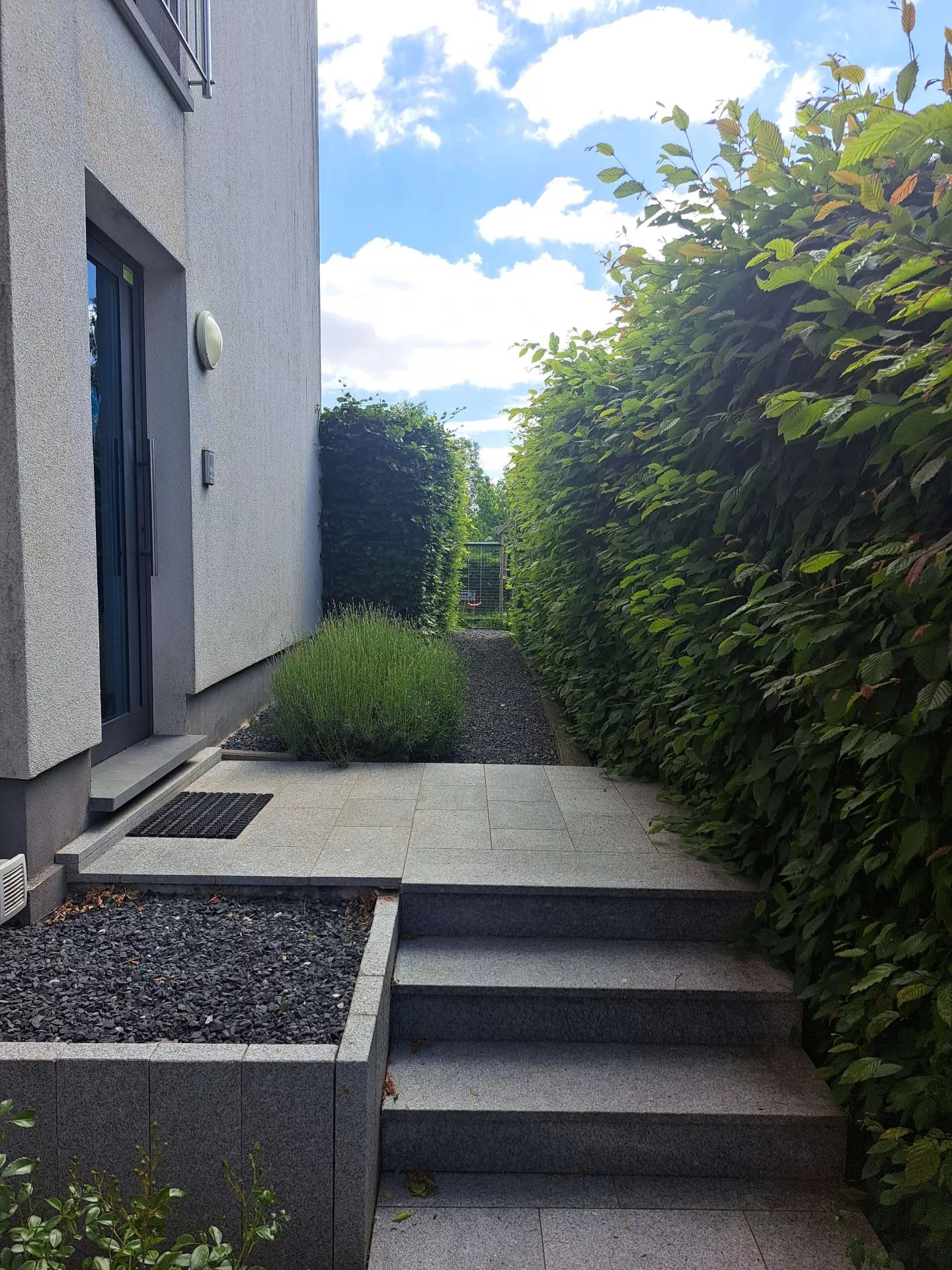 Par la droite de l'immeuble accès au grand jardin (+-300m²) commun divisé en deux et entièrement clôturé.