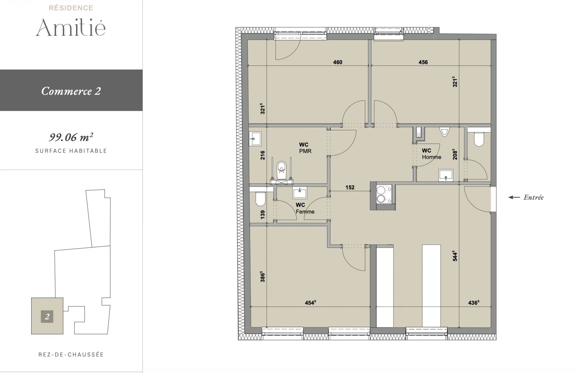 Située au rez-de-chaussée d’une résidence neuve, cette surface commerciale de 99,06 m² offre un fort potentiel dans un quartier en pleine évolution, à seulement 500 mètres du centre-ville.